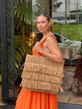 Bolsa de palha natural com detalhes em franja, um acessório perfeito para adicionar um toque de estilo boho-chic ao seu look. A palha é leve e resistente, enquanto a franja adiciona um toque de movimento e elegância. A bolsa é ideal para carregar os itens essenciais, como carteira, telefone e chave. O design é perfeito para o verão, mas também pode ser usado em outras estações para adicionar um toque de estilo único ao seu outfit. A combinação de naturalidade e elegância torna esta bolsa um acessório must-have para qualquer ocasião.
