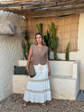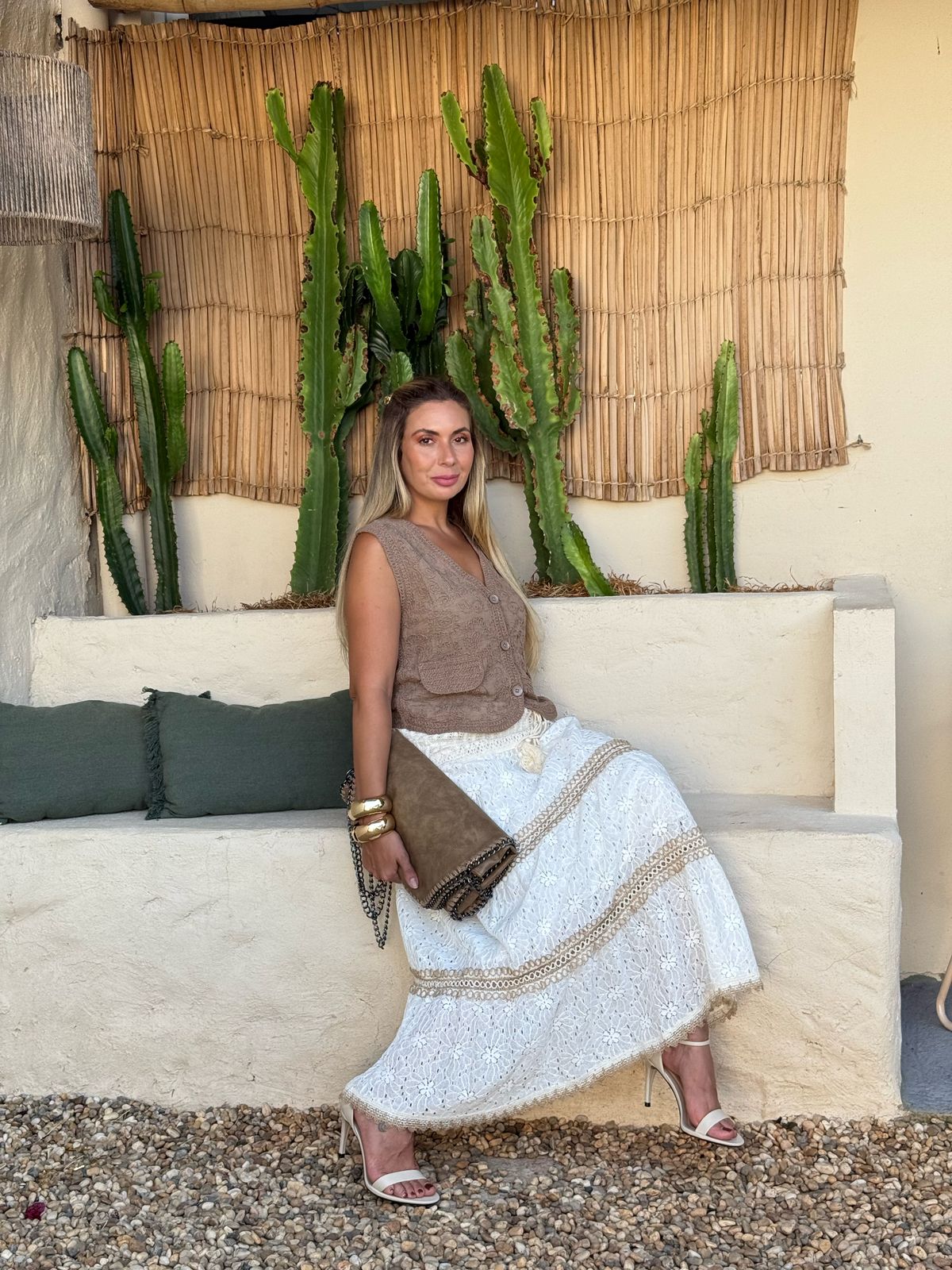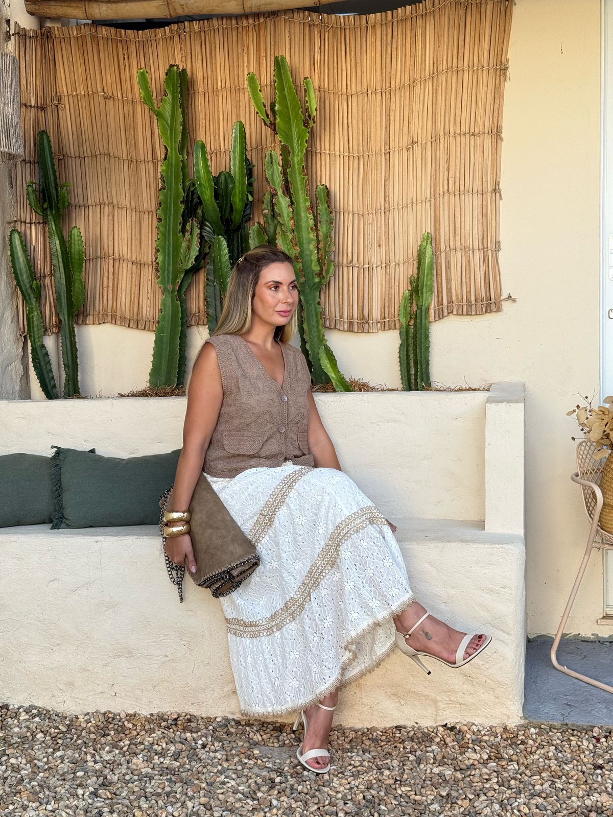 Saia de renda confeccionada com delicadeza e atenção aos detalhes. O tecido de renda é leve, aéreo e sedutor, criando um efeito visual deslumbrante. A silhueta da saia é feminina e elegante, com um corte que realça a forma do corpo. A renda é trabalhada em um padrão intrincado e bonito, adicionando um toque de luxo e sofisticação ao design. Ideal para ocasiões especiais, a saia de renda é uma peça que certamente fará você se sentir como uma rainha.