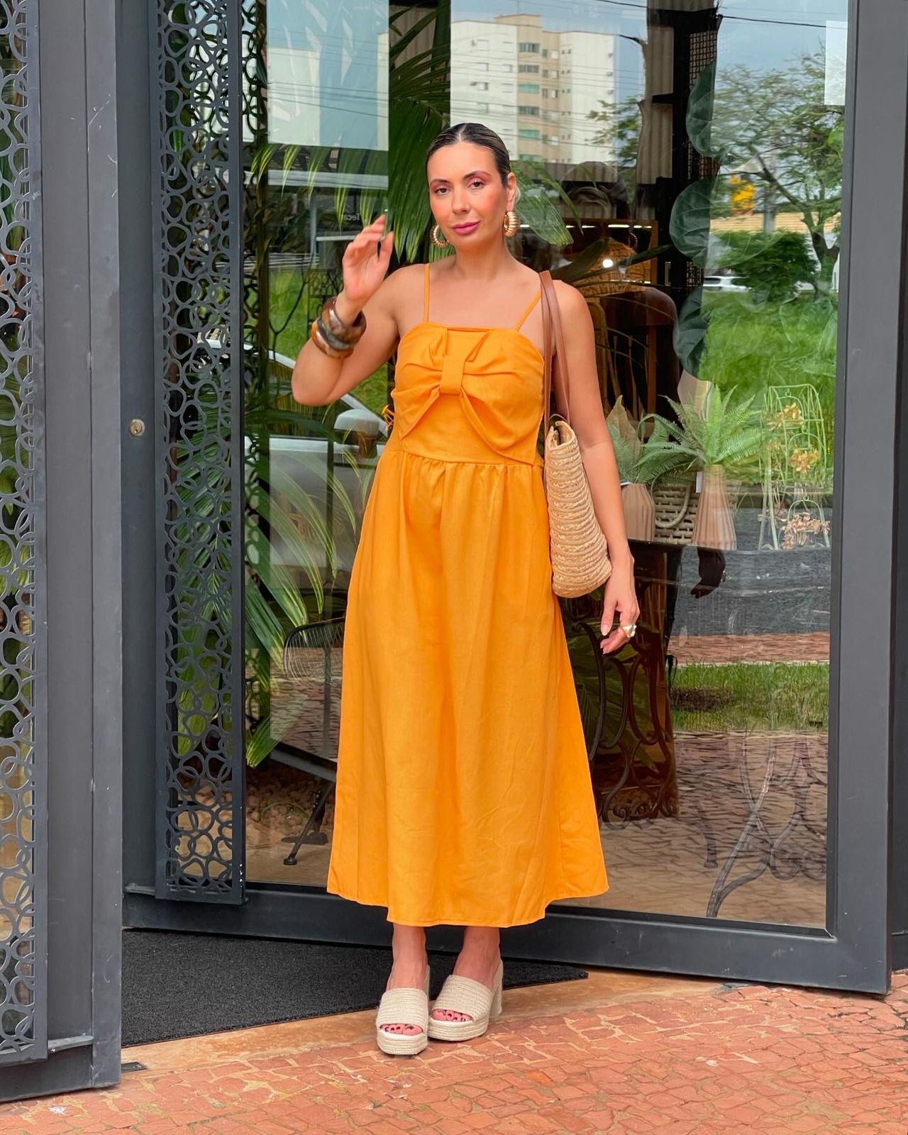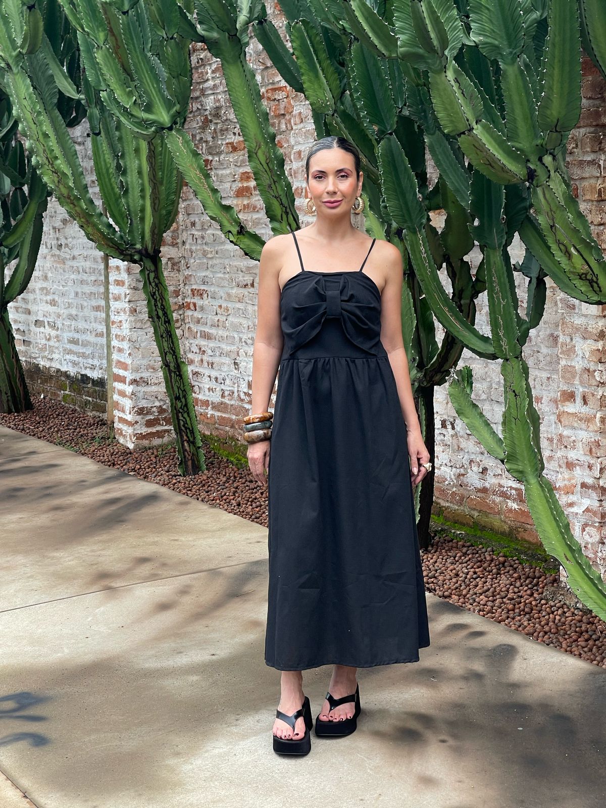 Vestido midi encantador com laço na frente, um verdadeiro ícone de feminilidade e elegância. O design midi é perfeito para quem busca um look que seja ao mesmo tempo clássico e moderno, enquanto o laço na frente adiciona um toque de charme e sofisticação. A silhueta é feminina e graciosa, realçando a forma do corpo e criando um efeito visual deslumbrante. O vestido é ideal para ocasiões especiais, como casamentos, jantares ou eventos de negócios, e é seguro de fazer você se sentir confiante e radiante. O laço na frente é um detalhe que adiciona um toque de personalidade e estilo ao design, tornando este vestido uma peça única e especial.