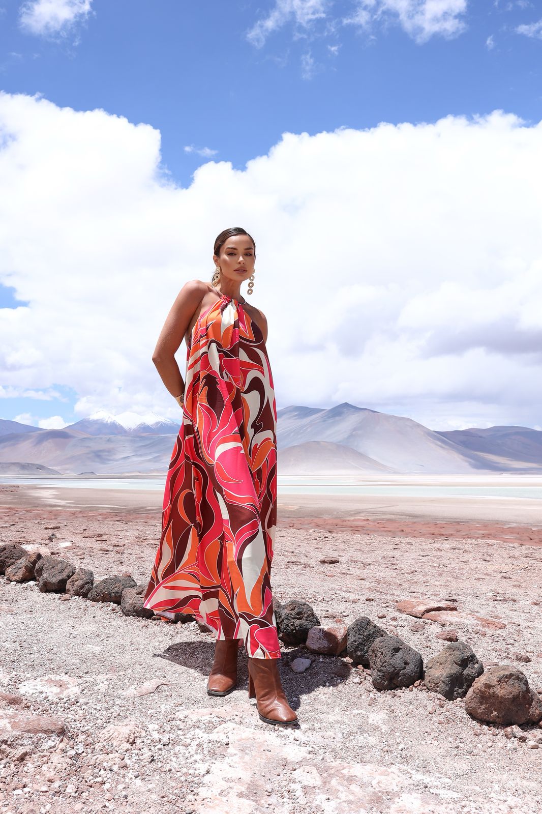 Vestido Sol é encantador e elegante, perfeito para quem busca um look que seja ao mesmo tempo feminino e sofisticado. A estampa é vibrante e colorida, criando um efeito visual deslumbrante que é seguro de chamar a atenção. O design do vestido é cuidadosamente pensado para realçar a forma do corpo, criando uma silhueta feminina e graciosa. O vestido é ideal para ocasiões especiais, como festas, jantares ou eventos de verão, e é seguro de fazer você se sentir confiante e radiante. A combinação de cores e estampas é perfeita para quem busca um look que seja ao mesmo tempo elegante e divertido.